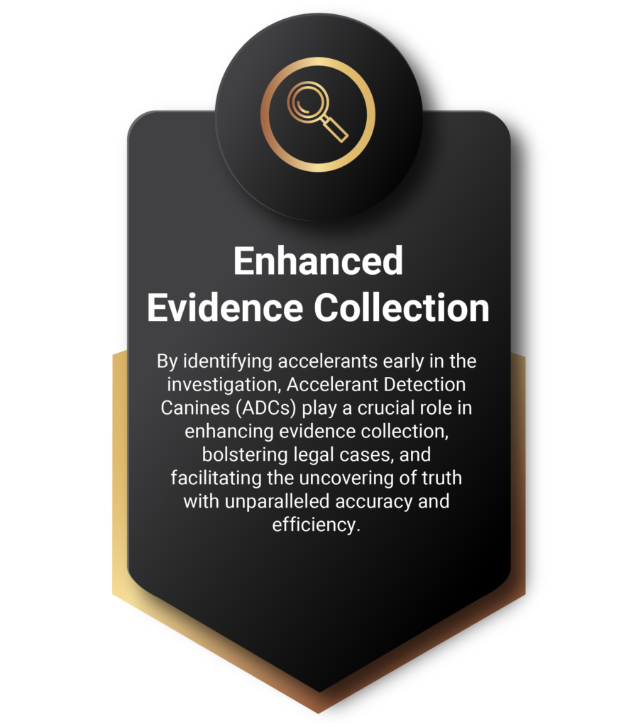 By integrating the expertise of Accelerant Detection Canines (ADCs) into our arsenal of investigative tools at Apex Forensic Fire Investigations, we revolutionize the field of forensic fire investigations. These remarkable canines play a pivotal role in swiftly identifying elusive accelerant traces, significantly enhancing the speed and precision of our evidence collection process, setting a new standard for forensic excellence in fire investigations.